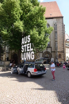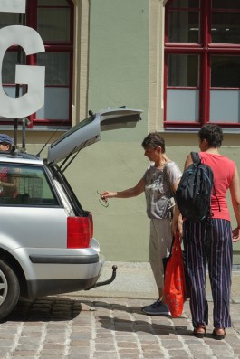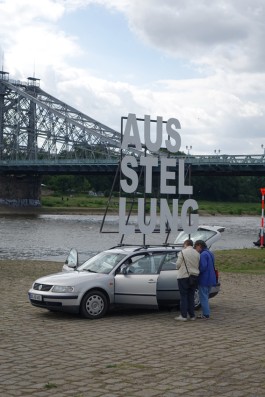 Die mobile Ausstellung mit Arbeiten von Mara May & Francis Kamprath (Weimar), Helmut Smits (Rotterdam), Yoav Admoni (Berlin/ Tel Aviv), Sofia Dona (Athen/ München), Amac Garbe (Dresden) und Marcus Große (Potsdam/Rathewalde) machte Station in Dresden im Kleingärtnerverein „Flora I“, am Elbufer, vor dem Stadtmuseum und dem Kunstverein Meißen sowie in Espenhain und Lorenzkirch.